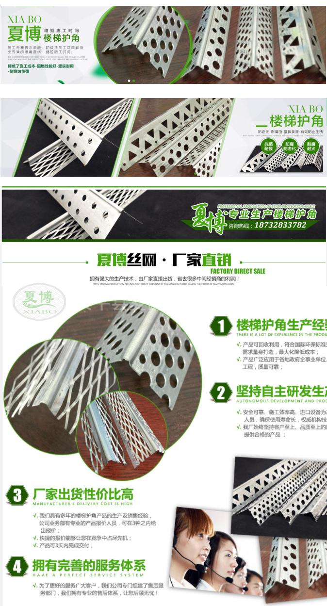 (1)尺寸:樓梯護角網是成長條形的護角,一邊是寬30、50、70mm。